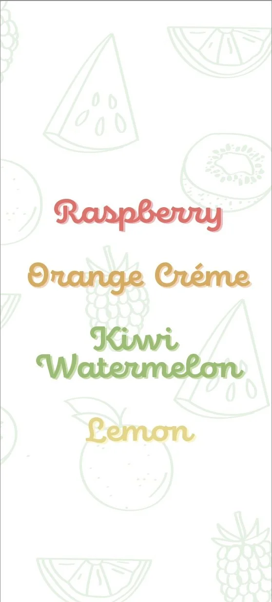 I wanted to make the design more modern and targeted towards a larger audience. I simplified the design with a pastel color palette. I also simplified the typefaces to only 2 instead of 5 to a playful script typeface and sans serif typeface. I illustrated a fruit pattern to make the packaging seem more genuine and unique.